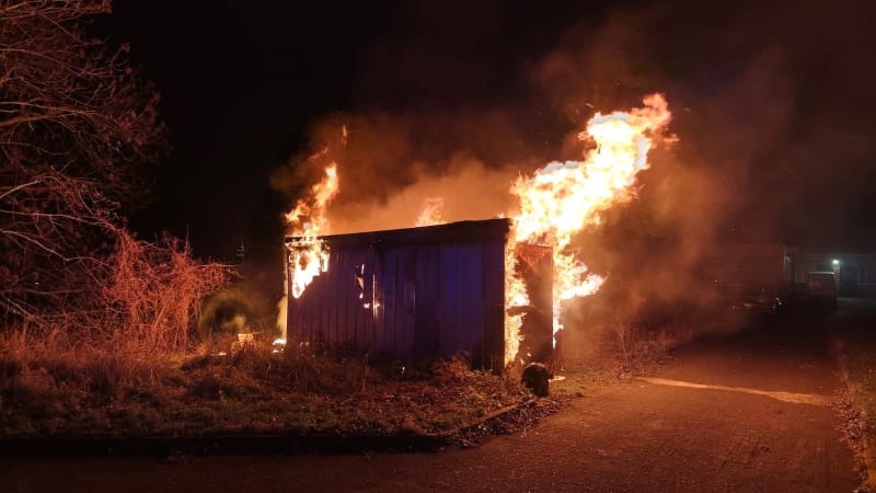 K nahlášenému požáru stavební buňky v Ústí nad Labem vyjely v sobotu večer čtyři jednotky profesionálních a dobrovolných hasičů. Muži, který byl uvnitř, už ale pomoci nemohli.